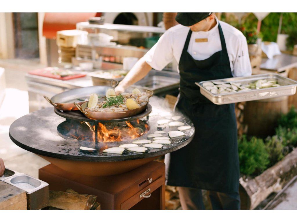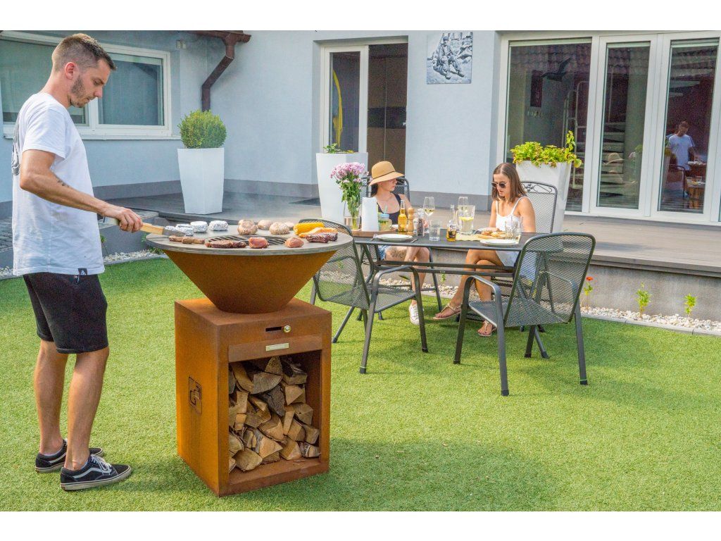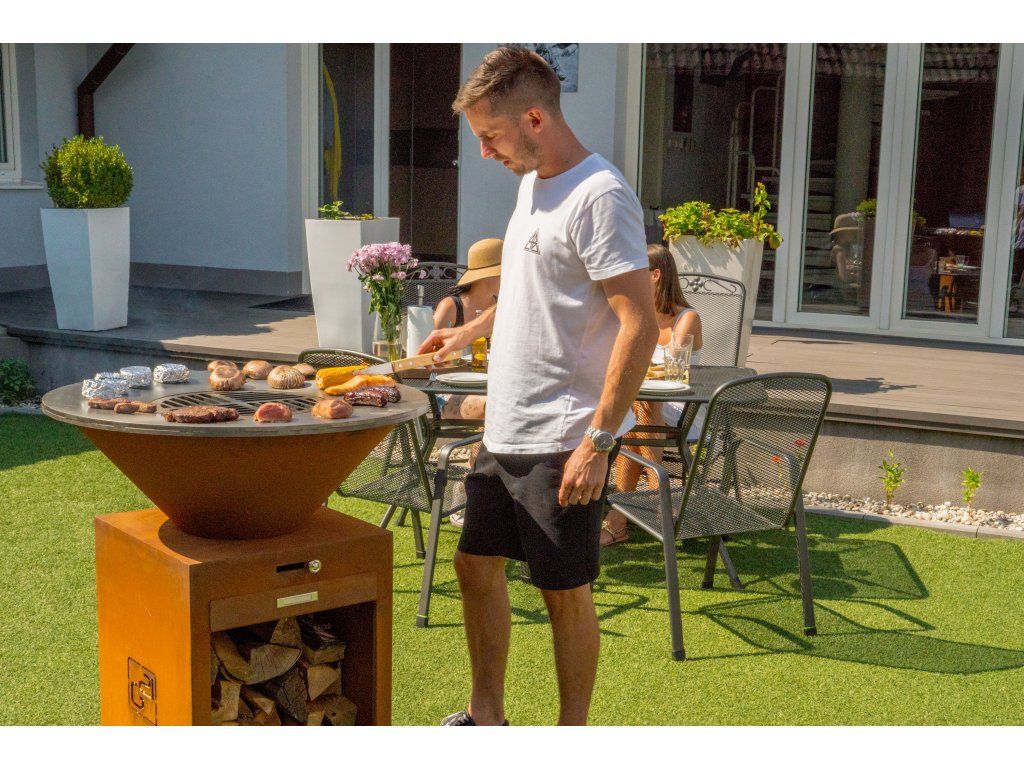 - Široké využití – corten gril s planchou využijete i v komerčním provozu pro efektivní předvádění přípravy jídel