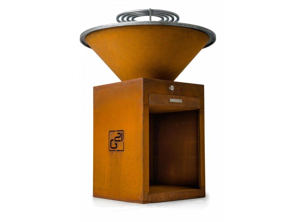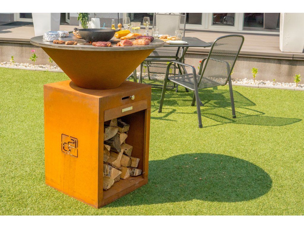 Cortenový gril G21 je konstrukčně řešený tak, aby grilování na něm bylo maximálně účelné. Ve spodní části grilu je krytý prostor pro ukládání dřevěných polen.