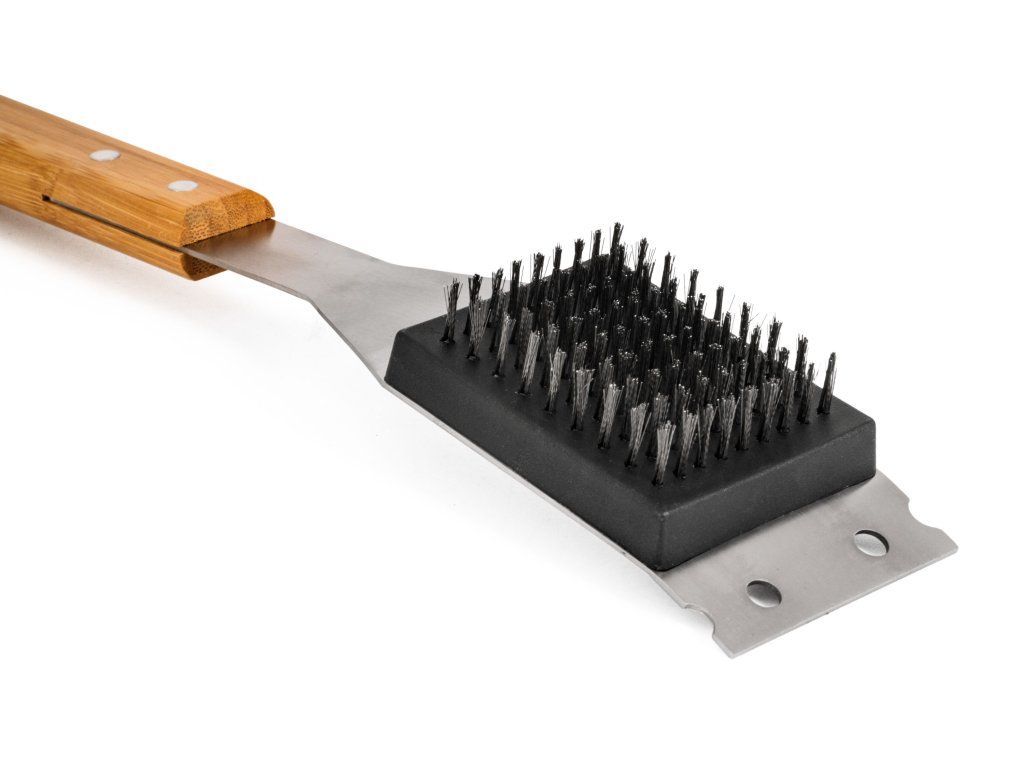 Po každém grilování přichází na řadu úklid – a s tím vám pomůže čistící kartáč G21. Hrubé štětiny si poradí s odolnou mastnotou a díky praktické škrabce odstraníte i silnější nánosy nečistot. Ergonomicky tvarovaná bambusová rukojeť dobře padne do ruky a zároveň dodává nářadí přírodní vzhled. Díky délce 45,3 cm se navíc dostanete i do hůře přístupných míst.