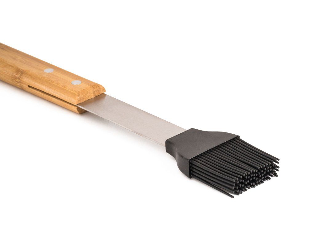Díky silikonovým štětinám rovnoměrně rozetřete marinádu, olej nebo omáčku. Grilovací nářadí je vyrobené z kvalitní nerezové oceli a rukojeti z bambusového dřeva. Pohodlně se vám drží v ruce. Je vhodná pro profesionály i domácí kuchaře, kteří chtějí mít plnou kontrolu nad přípravou svých oblíbených pokrmů.