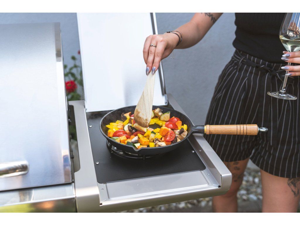 Znásobte svůj požitek z dokonalého grilování – grilujte na litinovém nádobí. Grilovací pánev z vysoce kvalitní litiny perfektně rozvádí a udržuje teplo. Litinová grilovací pánev je již vypálená a připravená k použití, takže první vypalování (jinak zvané také seasoning) už provádět nemusíte. Objevte kouzlo grilování na litině a užijte si všechny jeho výhody.