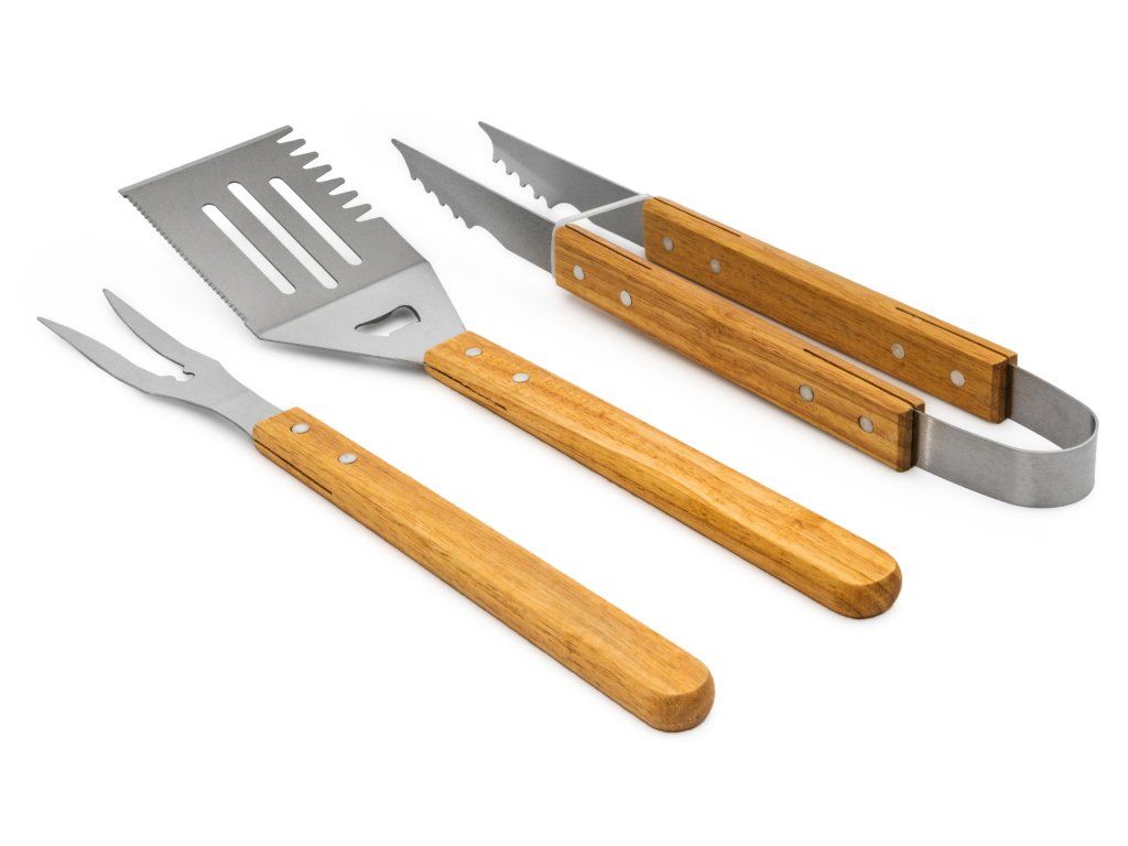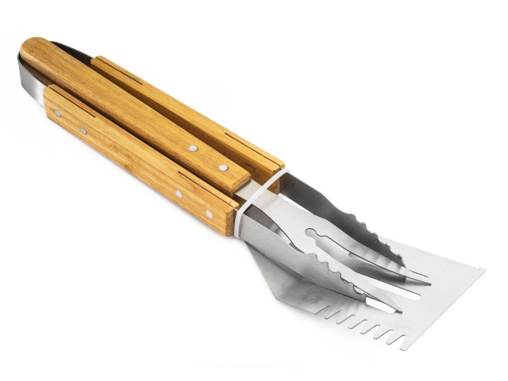 - kompletní sada s obracečkou, grilovací vidlicí a grilovacími kleštěmi