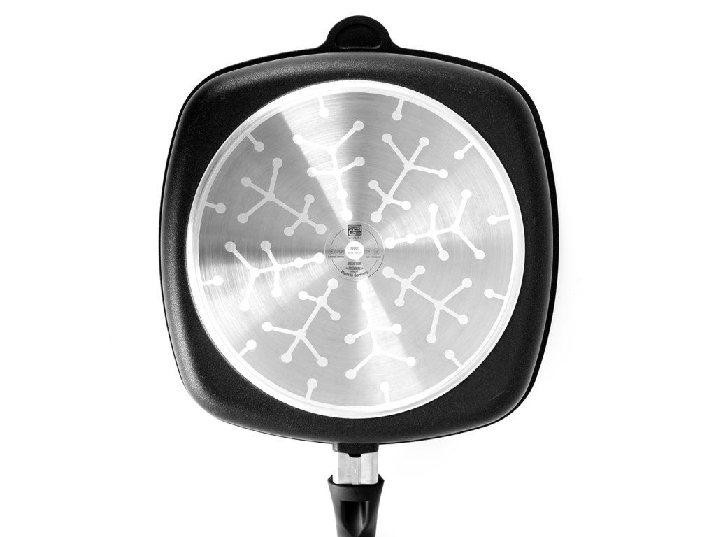 Pokud hledáte nejlepší grilovací pánev, radujte se. Právě jste našli čtvercovou pánev na grilování o rozměrech 28 x 28 cm a výšce 6,5 cm. Pánev je univerzální pro všechny typy ohřevů, teplo vede dokonale rovnoměrně, jídlo se na ní díky speciální nepřilnavé vrstvě LOTAN® nepřipaluje a smažit či grilovat můžete bez použití oleje.