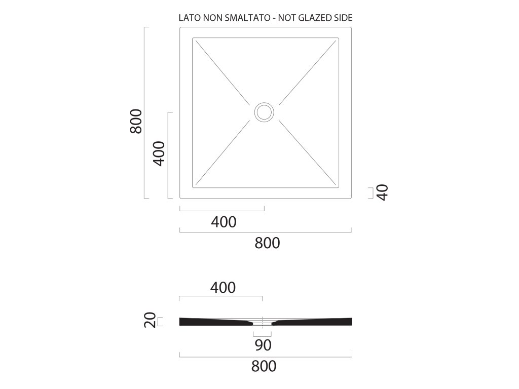 Boky vaniček, které jsou neglazované (určené k zazdění do zdi, či pod obklad), jsou na technickém výkresu označeny "not glazed side".