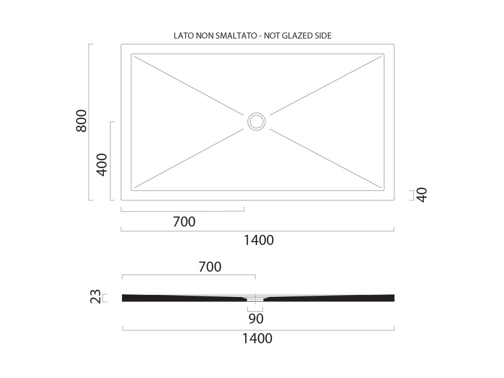 Boky vaniček, které jsou neglazované (určené k zazdění do zdi, či pod obklad), jsou na technickém výkresu označeny "not glazed side".