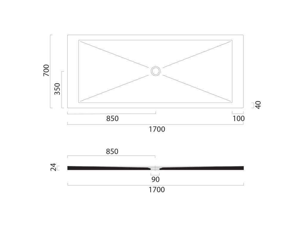 GSI Keramická sprchová vanička, obdélník 170x70x2cm, cenere mat 46170717