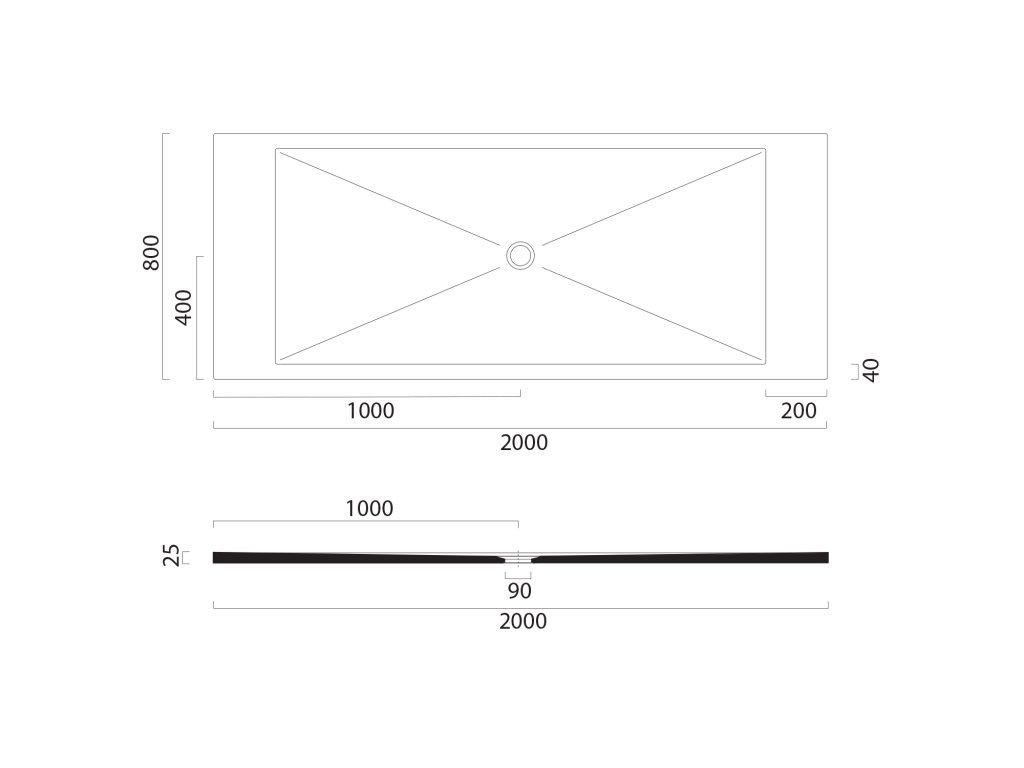 GSI Keramická sprchová vanička, obdélník 200x80x2cm, creta mat 46200808