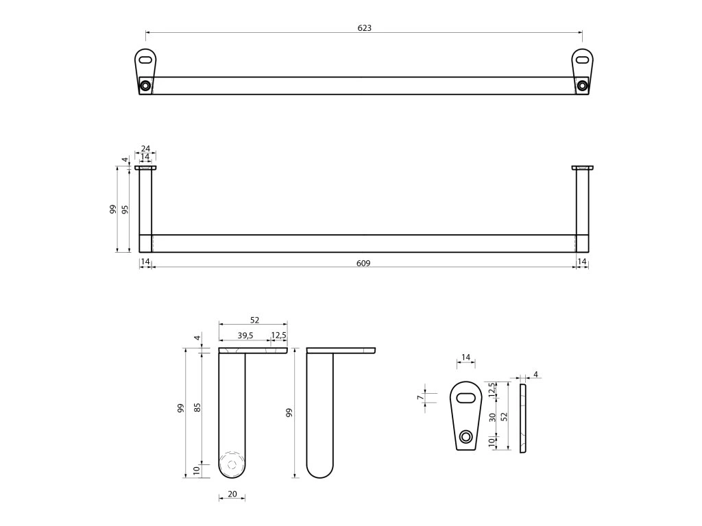 GSI KUBE X/NORM čelní držák ručníků 70cm, chrom PASAND70