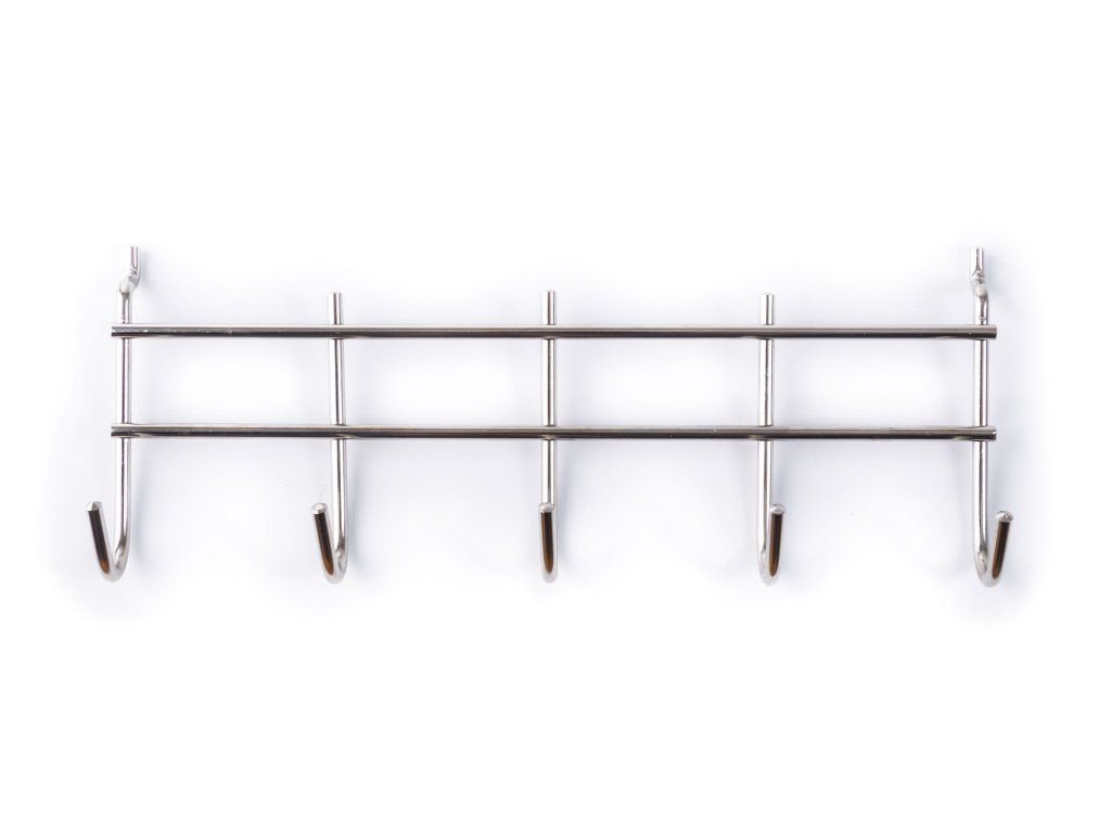 5 háčků na liště, kterou jednoduše zavěsíte do připravených otvorů u plynových grilů G21, slouží k zavěšení nejčastěji používaného grilovacího nářadí. Při grilování tak nemusíte hledat grilovací vidlici nebo kleště – stačí po paměti sáhnout na boční stěnu grilu a uchopit právě potřebné nářadí.