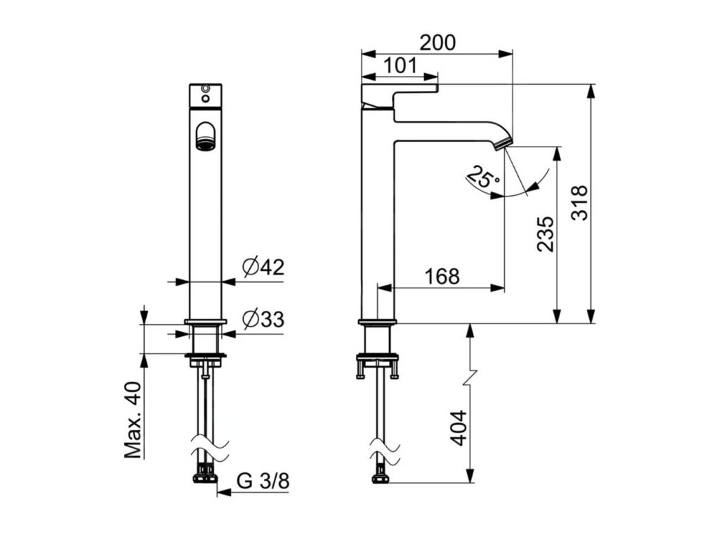 Páková stojánková vysoká umyvadlová baterie bez výpusti v chromovém provedení. Průtok baterie je 6 litrů/minutu. Výška baterie je 31,8 cm. Ramínko je ve výšce 23,5 cm. V barevném provedení lesk.