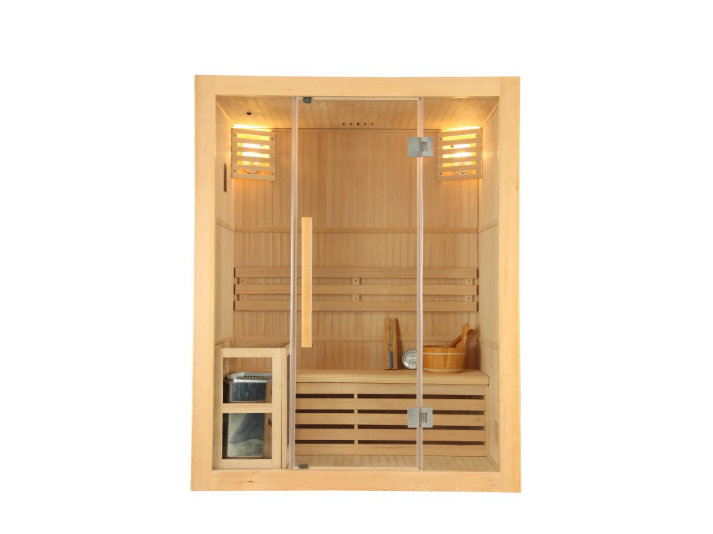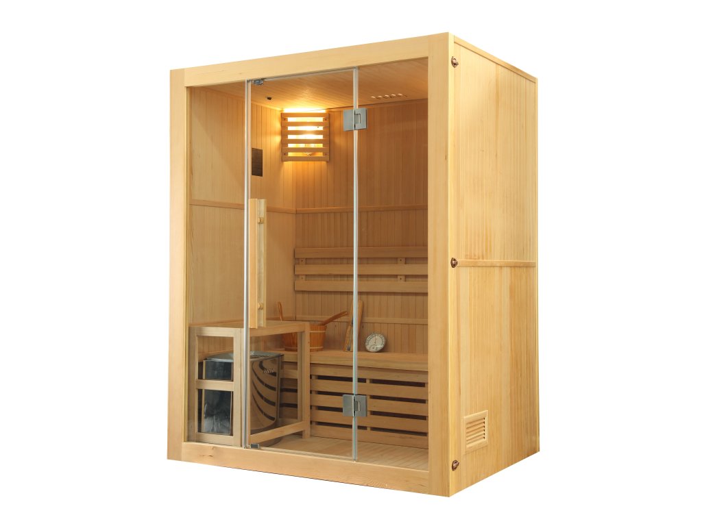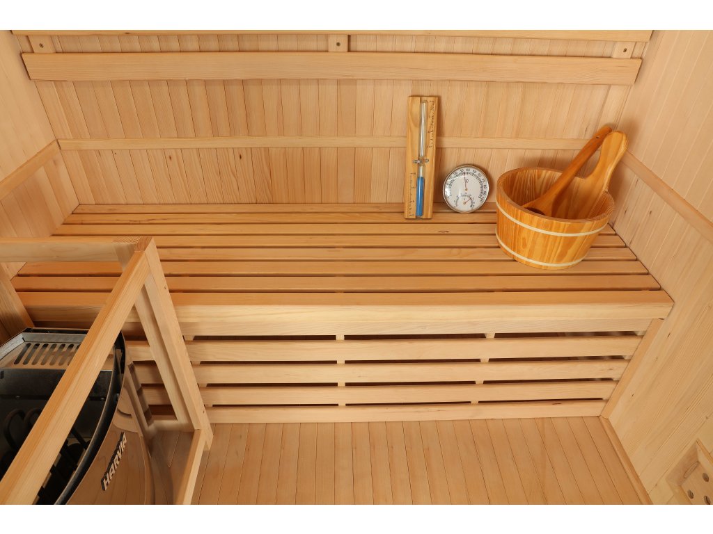 Elegantní domácí tradiční finská sauna Perinne 3 je navržena pro tři osoby a vyrobena z kanadského smrku. Tato sauna se hodí do interiéru rodinného domu i bytu.