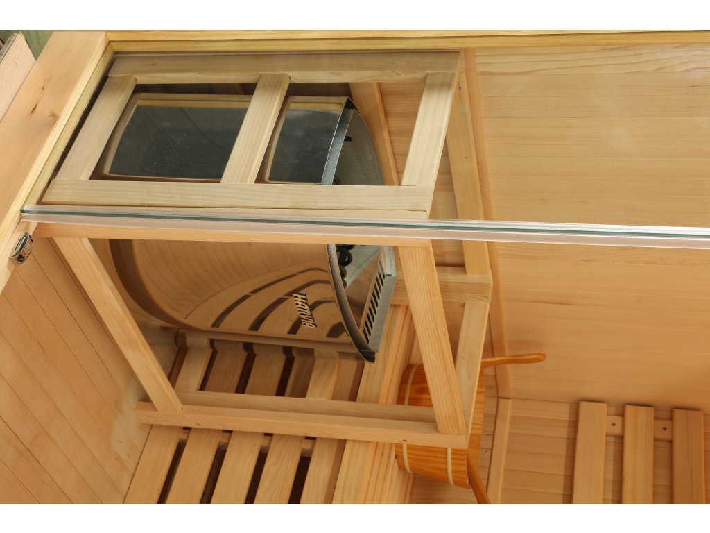 Kamna a další příslušenství nejsou součástí sauny, je nutno dokoupit zvlášť. Doporučujeme dokoupit kamna SAWO mini X o síle 3,5 kW.