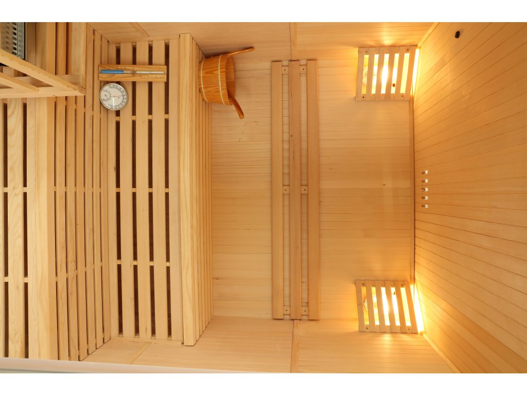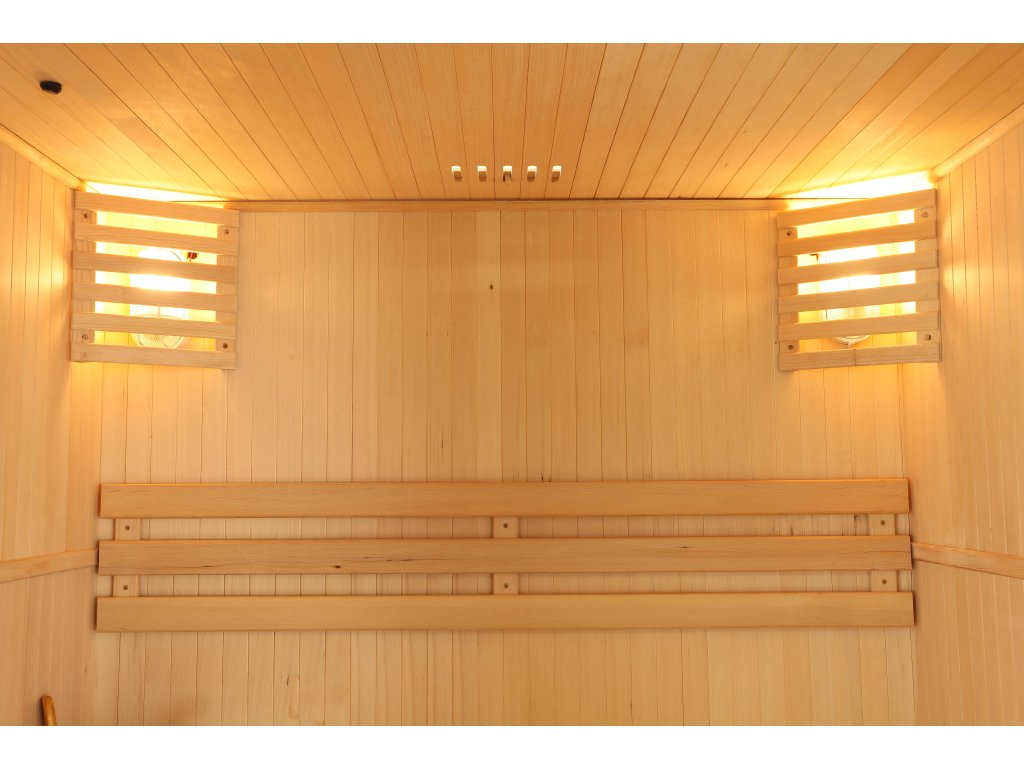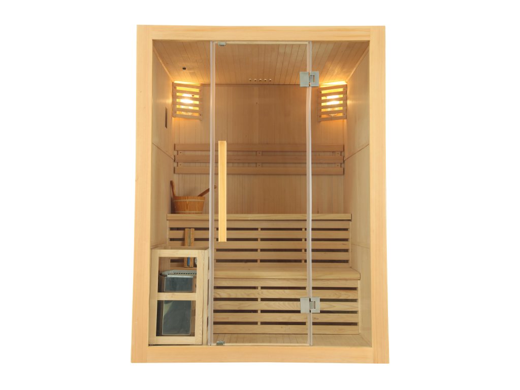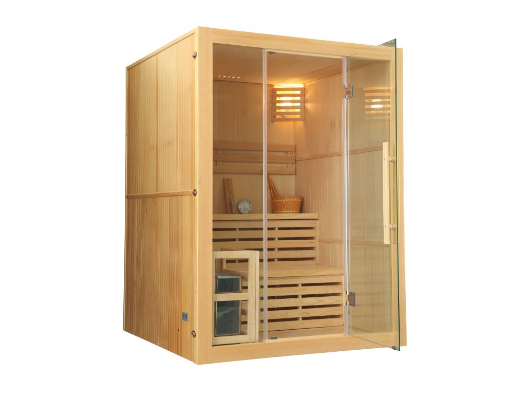 Elegantní domácí tradiční finská sauna Perinne 4 je navržena pro 4 osoby a vyrobena z kanadského smrku. Tato sauna se hodí do interiéru rodinného domu i bytu.