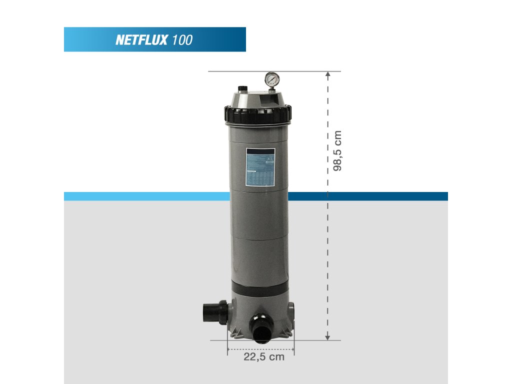 Filtr Netflux je také vybaven vysoce kvalitním tlakoměrem, který poskytuje jasný přehled o provozním tlaku. Tato funkce umožňuje snadné sledování stavu filtru a rychlý zásah v případě potřeby, čímž je zajištěna optimální filtrace vody ve vašem bazénu nebo vířivce.