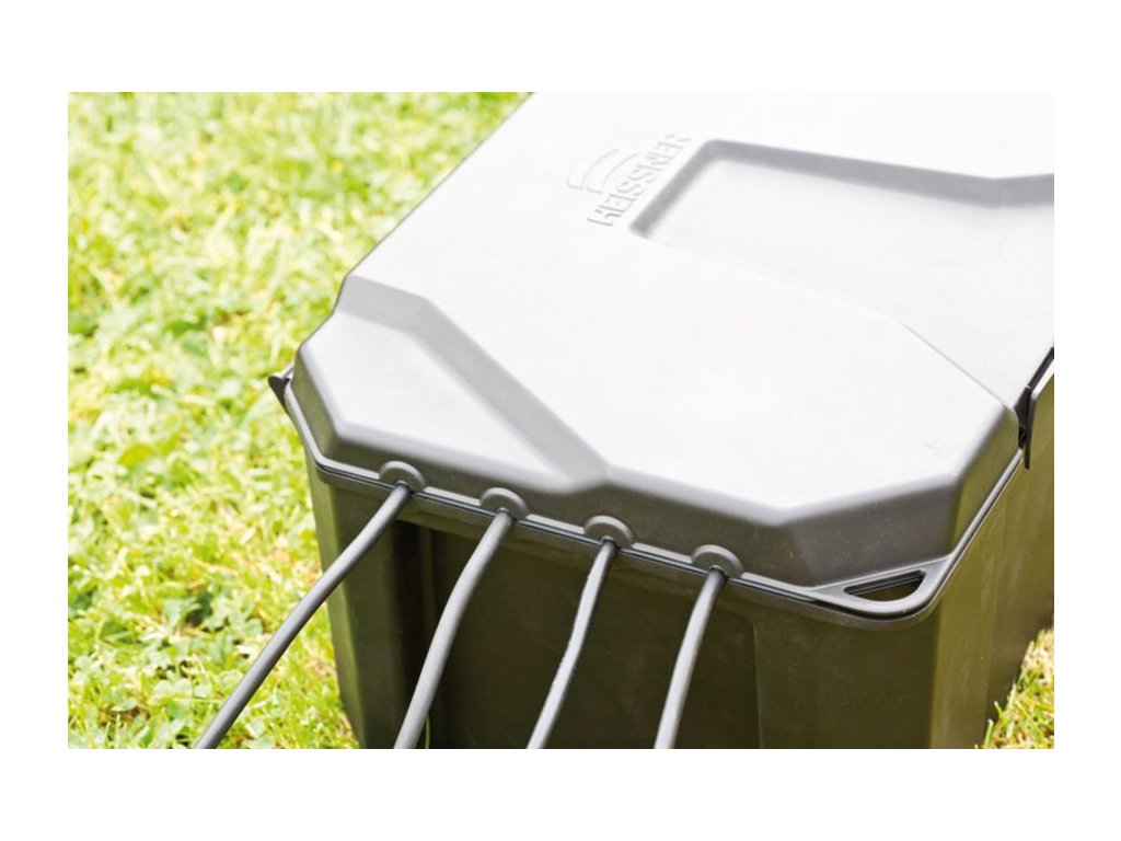 Zahradní Power Box HEISSNER Z960-00, správné a bezpečné uložení elektrických kabelů na zahradě, díky ochraně IP64 je prachu vzdorný a chráněn proti stříkající vodě, box se dá zatížit do 80 kg a uzamknout visacím zámkem, aby byl zabezpečen před dětmi, může se zakopat do 2/3 a zakrýt, d x š x v 41 x 30 x 21 cm