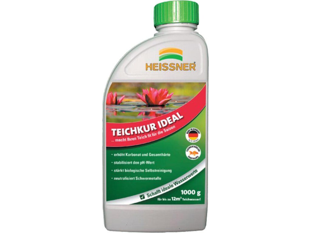 Správná péče o jezírko je nezbytná k tomu, aby se jezírko stalo ideálním stanovištěm pro živočichy a vodní rostliny a vrcholem vaší zahrady. Péče o vodu je zásadní pro zajištění dostatku kyslíku a zachování jezírkového ekosystému. HEISSNER nabízí 5 přípravků, které obsáhnou kompletní péči o jezírko. Úprava jezírkové vody do ideálních hodnot HEISSNER TZ751-00 Připraví Vaše jezírko na sezónuzmění vodu z řádu na jezírkovou vytvoří ideální hodnoty pro jezírkovou vodu doplní minerální látky zvýší karbonovou a celkovou tvrdost stabilizuje hodnoty pH posílí biologický samočistící proces pomáhá i při předávkováním přípravku proti řasámGranulátová směs, které zoptimalizuje vodu v jezírku při prvním napuštění, výměně vody, při každoročním začátku sezóny, po odstranění řas, nebo při viditelné ztrátě vitality jezírka. TIP: Otestujte jednou za čas karbonovou tvrdost v jezírku (např. Rychlím testem 6v1, výr. TZ791-00). Při hodnotách KH- pod 6° dH doporučujeme znovu přidat Úpravu jezírkové vody do ideálních hodnot Heissner TZ751-00, aby se jezírkové bakterie uchytily a správně fungoval samočistící proces. obsah 1000g / až na 12 m³ jezírkové vodyDoplňkové parametry
