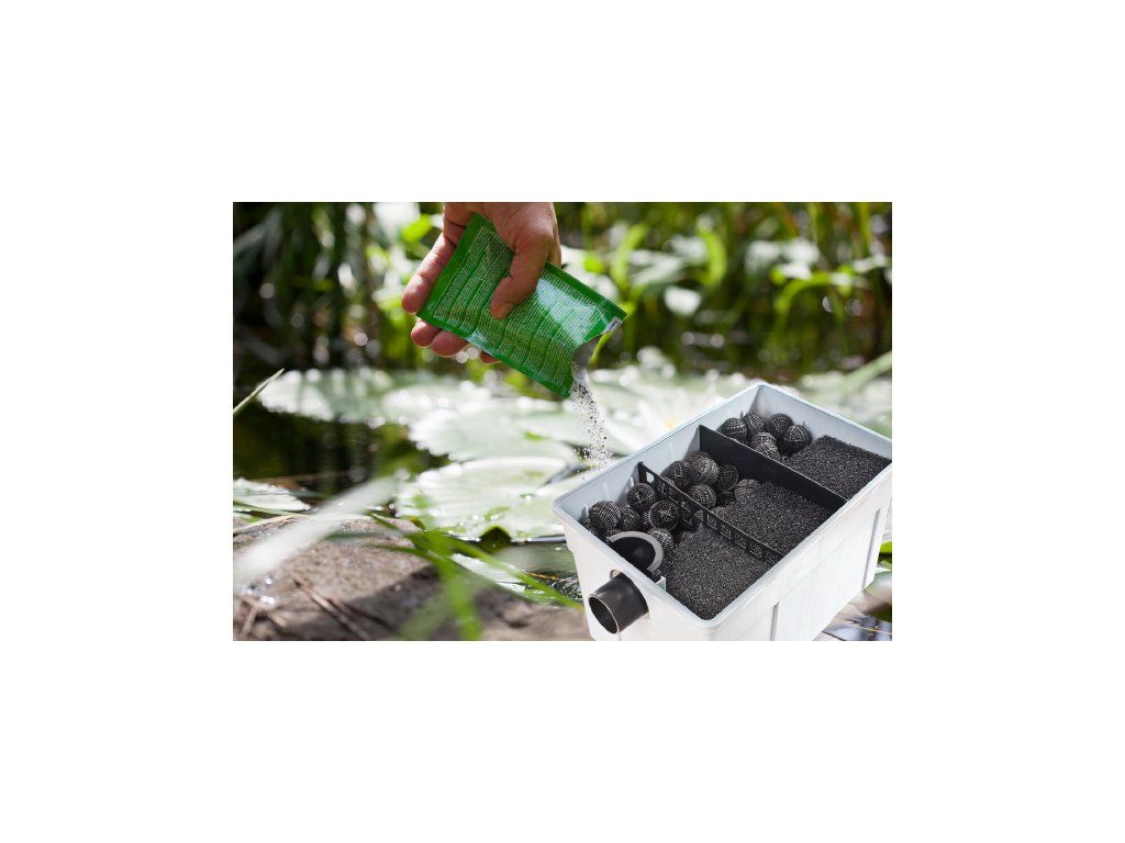 Správná péče o jezírko je nezbytná k tomu, aby se jezírko stalo ideálním stanovištěm pro živočichy a vodní rostliny a vrcholem vaší zahrady. Péče o vodu je zásadní pro zajištění dostatku kyslíku a zachování jezírkového ekosystému. Správně aktivuje a podpoří Váš filtrační systém. Roční sada HEISSNER F-PLUS Jedno balení F+ s 10ti ks sáčky Vám vystačí na celou sezónu /od jara do podzimu/. Jednoduchá aplikace: každé 3 týdny nasypat obsah sáčku přímo do filtru. Obsahuje 7 x přípravek na úpravu vody, ten nastaví správné hodnoty ph a tvrdosti, což je důležité pokud je voda moc měkká nefungují pak filtrační bakterie. Obsahuje 3 x startovací filtrační bakterie, usídlí se ve filtraci a v jezírku odebírají živiny pro řasy. Díky srážkám a vnějším vlivům se mění hodnoty jezírkové vody a mohou mít vliv na kvalitu vody, ale díky sadě HEISSNER F-PLUS přejdete možným problémům. F+ urychluje vznik prospěšných bakterií ve filtru F+ zlepšuje a zvyšuje výkon filtrace F+ zvyšuje tvrdost vody a stabilizuje hodnotu pH F+ doporučován pro všechny filtry pro jezírka o objemu od 2 000 l do 40 000 l Sada obsahuje- 3x startovací bakterie, 7x přípravek na úpravu vody, aplikační plán s kalendářemDoplňkové parametry