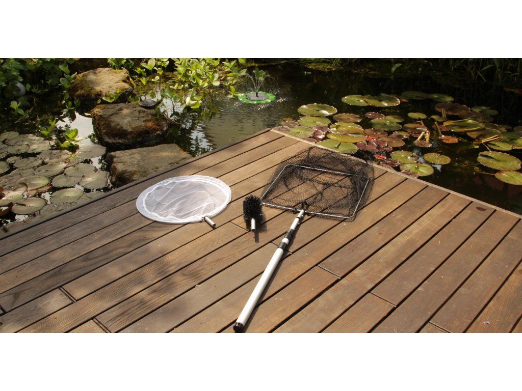 Nářadí na čištění jezírka HEISSNER TZ314-00 je sada, která obsahuje dvě síťky pro sběr nečistot, kartáč na řasy a teleskopickou násadu. S jemnou síťkou snadno vylovíte drobné nečistoty jako jsou semínka břízy, jehnědy, drobné lístky nebo shluky řas. Síťka s většími oky 36 x 36cm se hodí na listy a odumřelé rostliny a menší větvičky. Kartáč odstraní chuchvalce řas. Všechny tyto nečistot by měly být co nejdříve z vodní hladiny jezírka odstraněny, neboť dlouhodobě poškozují kvalitu vody a podporují růst řas. Sada na čištění jezírka s obdélníkovou a kulatou síťkou obsahuje násadu z eloxovaného hliníku. Hodí se k celoročnímu použití. Již pár teplých letních dnů stačí k masivnímu zvýšení růstu řas v zahradním jezírku. Pro plovoucí listí a řasy použijete nástavec s jemným síťováním o průměru 36 cm. Pro odstranění vláknitých řas použijete nástavec s kartáčem. Sada obsahuje teleskopickou násadu 55-150 cm. • jemná síťka na drobné nečistoty • hrubší síťka na listí • kartáč na řasy • teleskopická rukojeťDoplňkové parametry