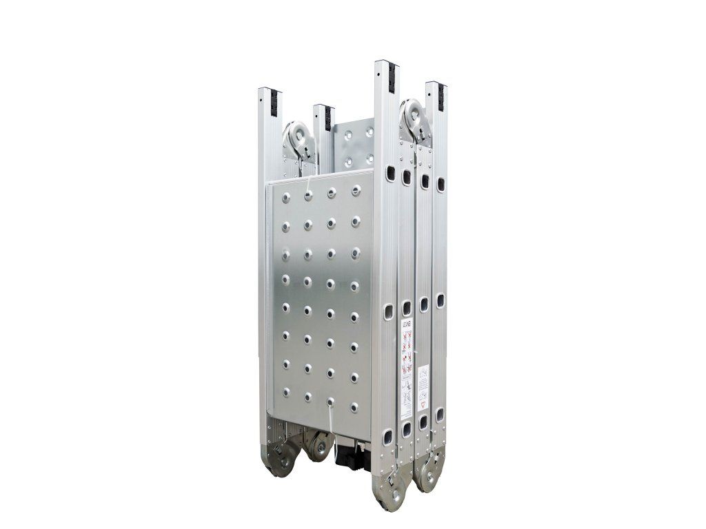 Hliníkové štafle můžete využít jednak jako dlouhý žebřík v délce až 3,7 m. Další variantou je možnost sestavit štafle jako přenosné lešení. Díky konstrukci s klouby lze štafle snadno umístit přes hřeben střechy.