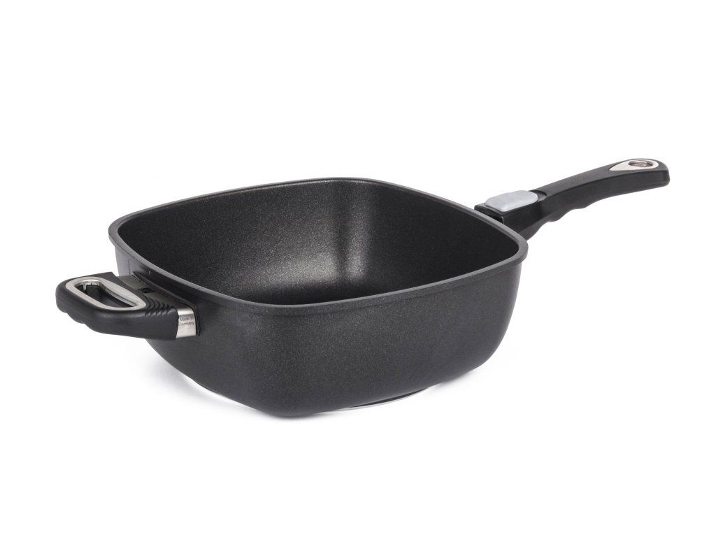 Prohlédněte si čtvercovou, 9 cm vysokou pánev, která splňuje všechny uvedené požadavky na dokonalou pánev. Je univerzální pro všechny typy ohřevů, teplo vede dokonale rovnoměrně, jídlo se na ní díky speciální nepřilnavé vrstvě LOTAN® nepřipaluje a smažit či zapékat můžete bez použití oleje.