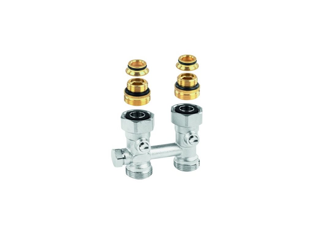 Přes redukční vsuvku z G 3/4" na G 1/2" k radiátorům s vnitřním závitem G 1/2".