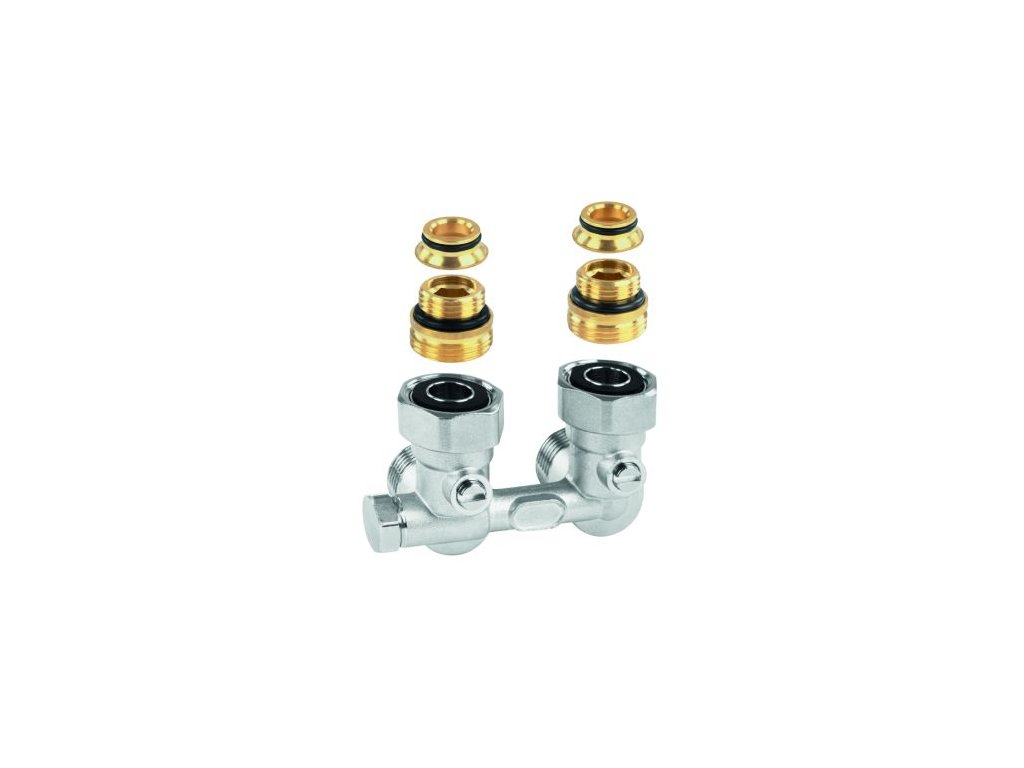 Přes adaptér s plochým těsněním na Euroconus k otopným tělesům s připojením G 3/4" Euroconus podle EN 16313.