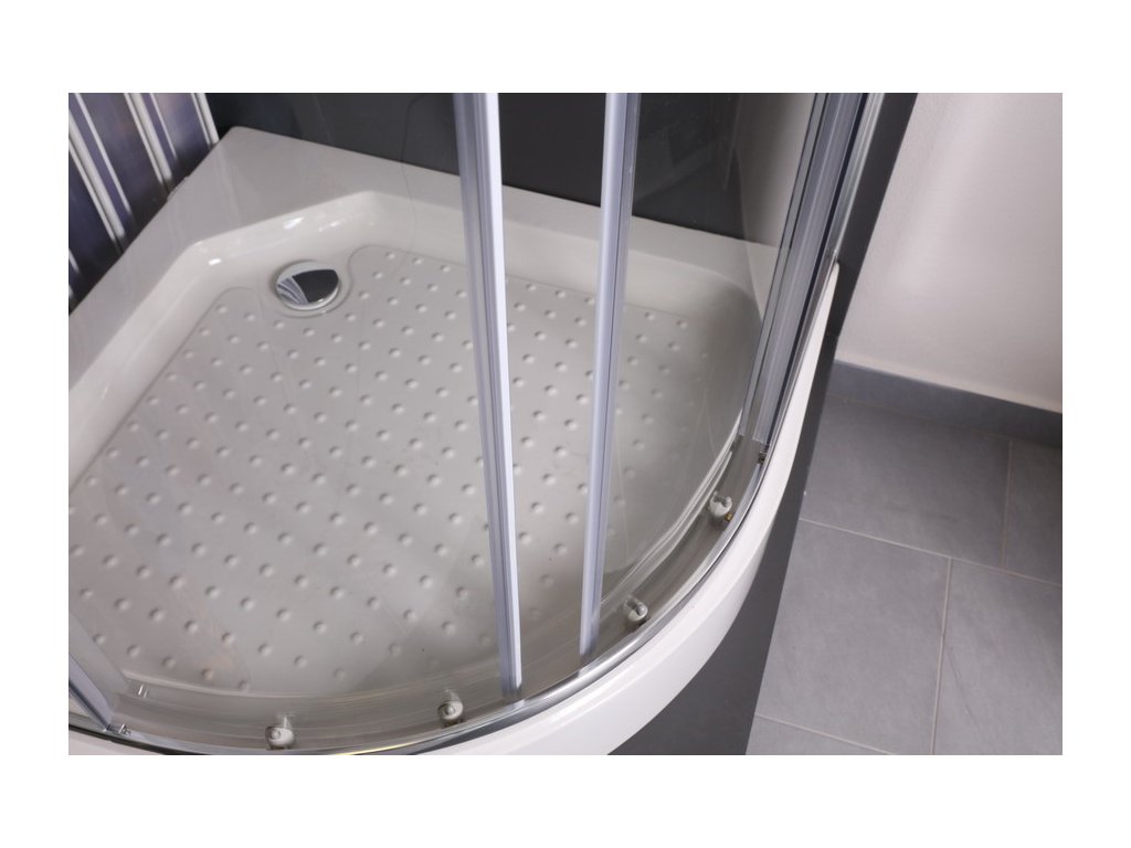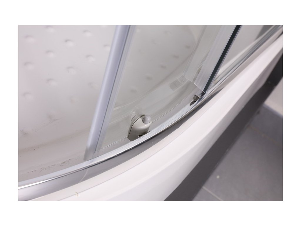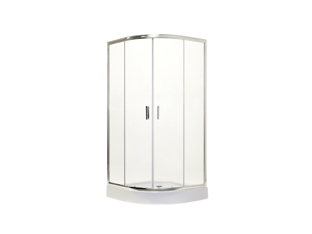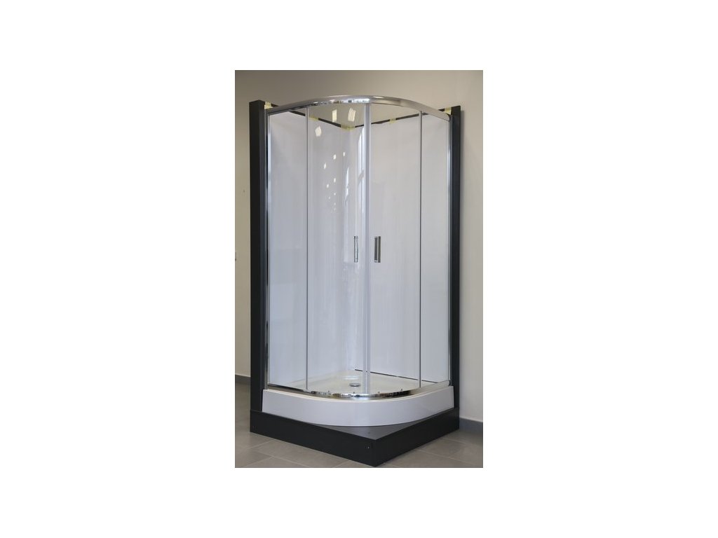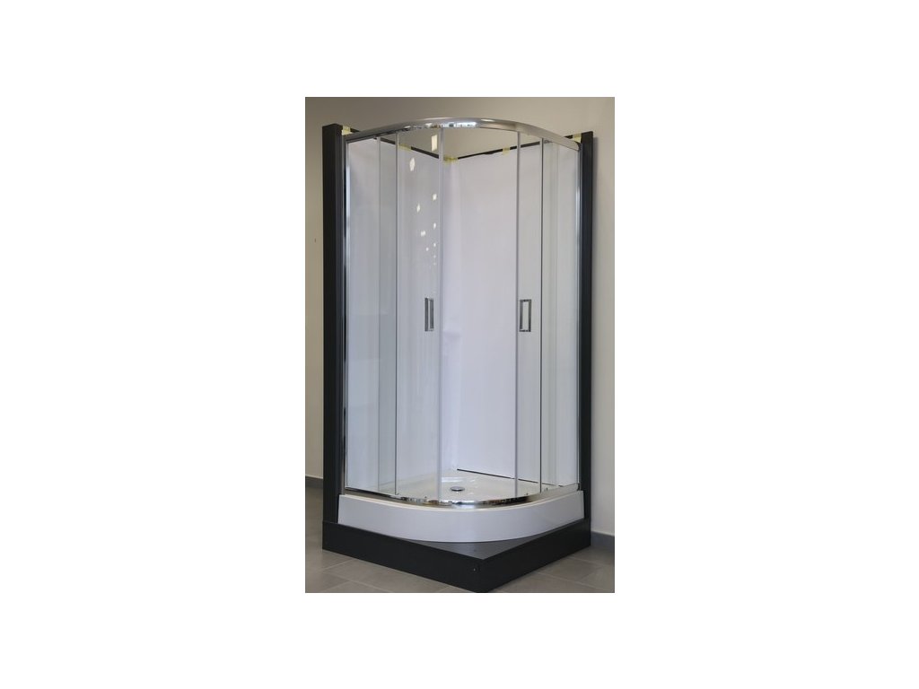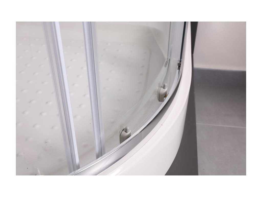 Čtvrtkruhový sprchový kout BILBAO, značky. Skvělý sprchový kout s vaničkou se sifonem, vyniká stabilními hliníkovými profily nepodléhající korozi v barvě chromu. Dokonalou těsnost sprchového koutu zajistí bezpečnostní sklo čiré (5 mm) a magnetické dovírání dveří. Tichý posun pomocí ložiskových pojezdů s vysokou životností (spodní vymačkávací pro snazší údržbu).
