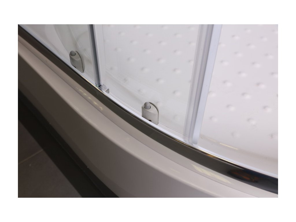 Čtvrtkruhový sprchový kout BILBAO, značky. Skvělý sprchový kout s vaničkou se sifonem, vyniká stabilními hliníkovými profily nepodléhající korozi v barvě chromu. Dokonalou těsnost sprchového koutu zajistí bezpečnostní sklo čiré (5 mm) a magnetické dovírání dveří. Tichý posun pomocí ložiskových pojezdů s vysokou životností (spodní vymačkávací pro snazší údržbu).