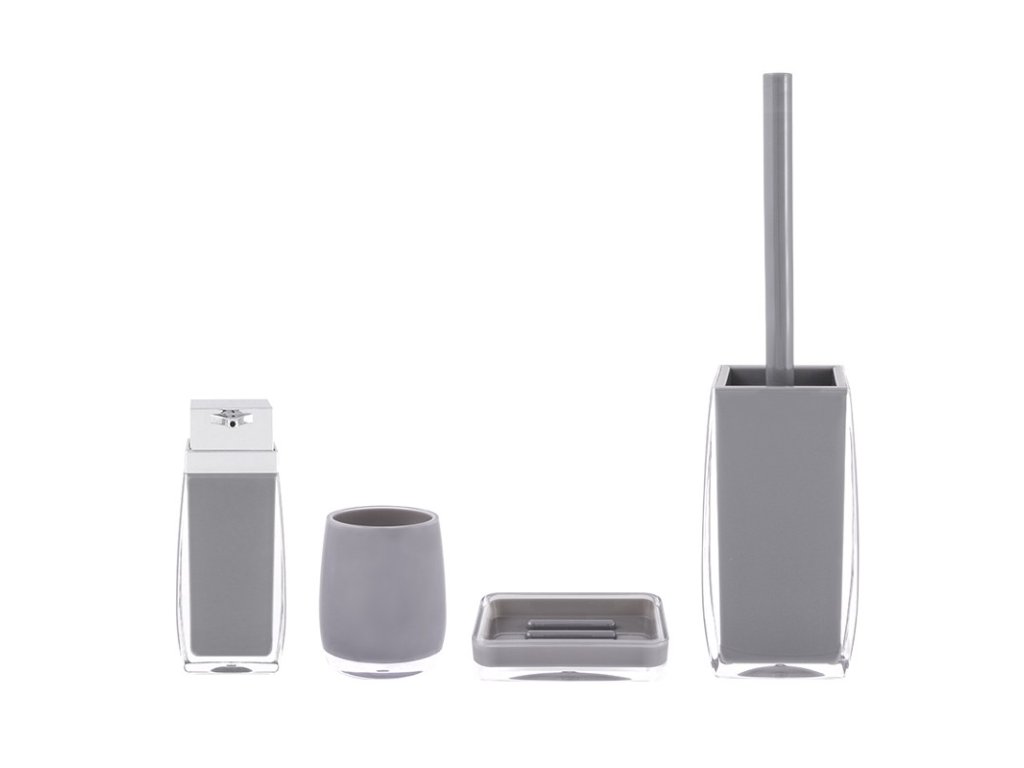 Sérii BEHE je tvořena dávkovačem tekutého mýdla (250 ml), kelímkem na zubní kartáčky, mýdelníkme a WC štětkou.