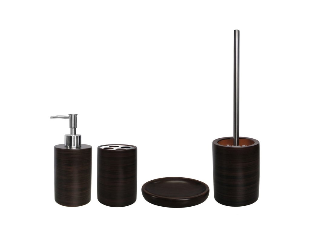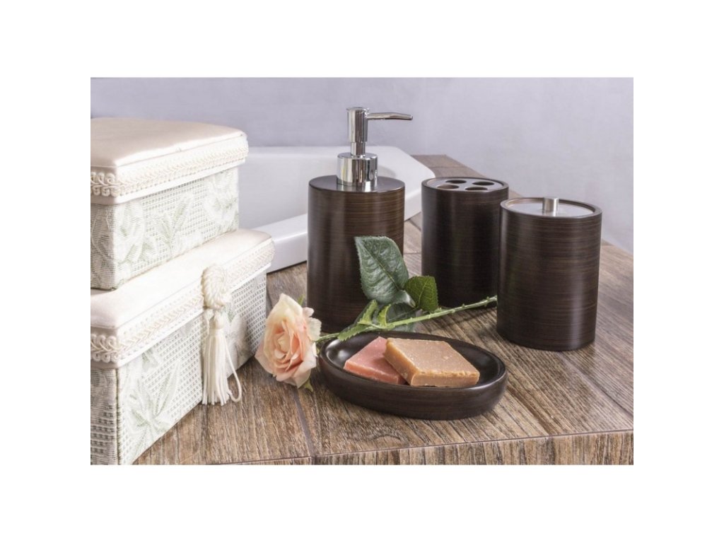 Série ETNIC je tvořena kelímkem na zubní kartáčky, mýdelníkem, WC štětkou