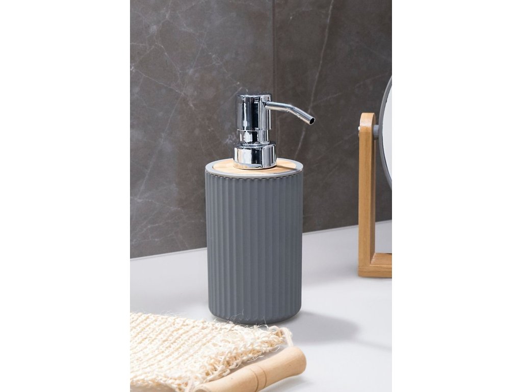 Trendy koupelnová série RAYAON se vyznačuje velmi kvalitními materiály, které dodá Vaší koupelně velmi svěží vzhled. Koupelnová série je vyrobena z plastu a bambusu v moderní šedé barvě. Sérii tvoří (a my ji prodáváme pouze samostatně po jednotlivých typech - viz. menu vpravo) -  kelímek na zubní kartáčky, mýdelník, WC štětka, dávkovač mýdla a kosmetické zrcátko.