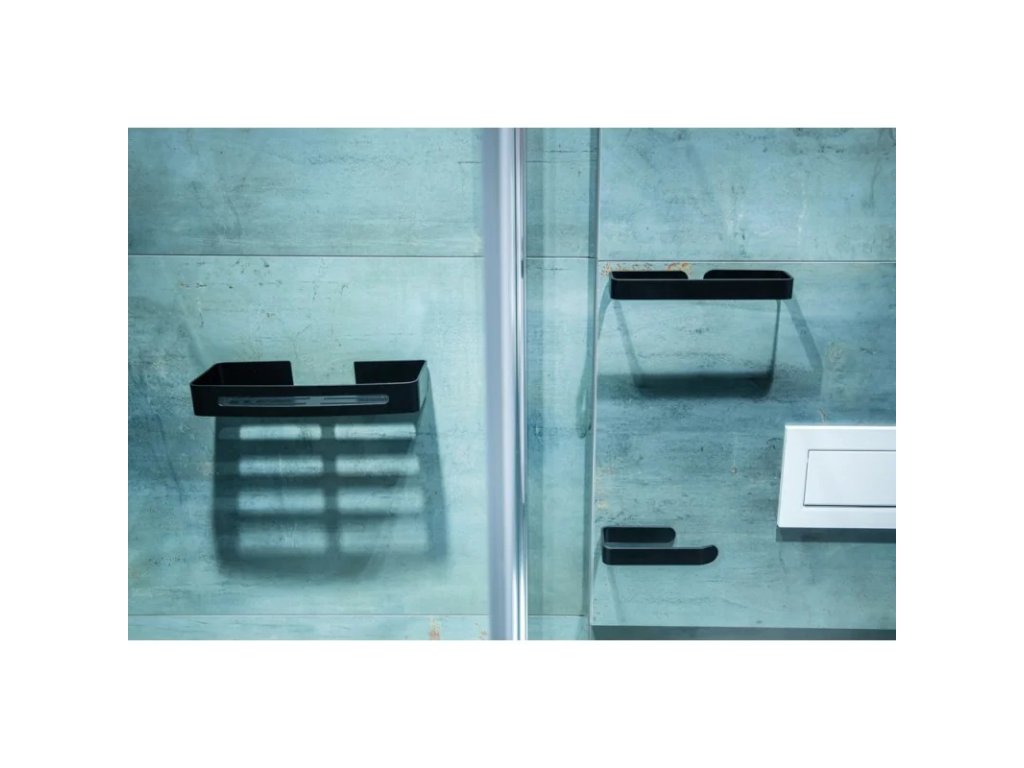 Lehká koupelnová polička z hliníku lakovaného matnou černou barvou. Instalace se provádí na samolepicí pásku 3M s vysokou lepicí silou. Samolepící koupelnové doplňky jsou ideálním řešením, pokud nechcete vrtat do obkladů. Velmi kvalitní lepící páska 3M přilne k různým povrchům a umožňuje snadné odstranění doplňků bez zanechání stop či poškození. Její maximální nosnost je 3 kg.