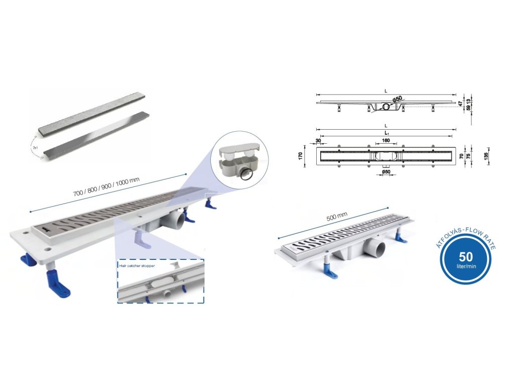 Kvalitně a moderně zpracovaný odtokový žlab, vyroben kombinací pevného plastu a nerezového roštu, obohatí každou koupelnu o nádech luxusu.