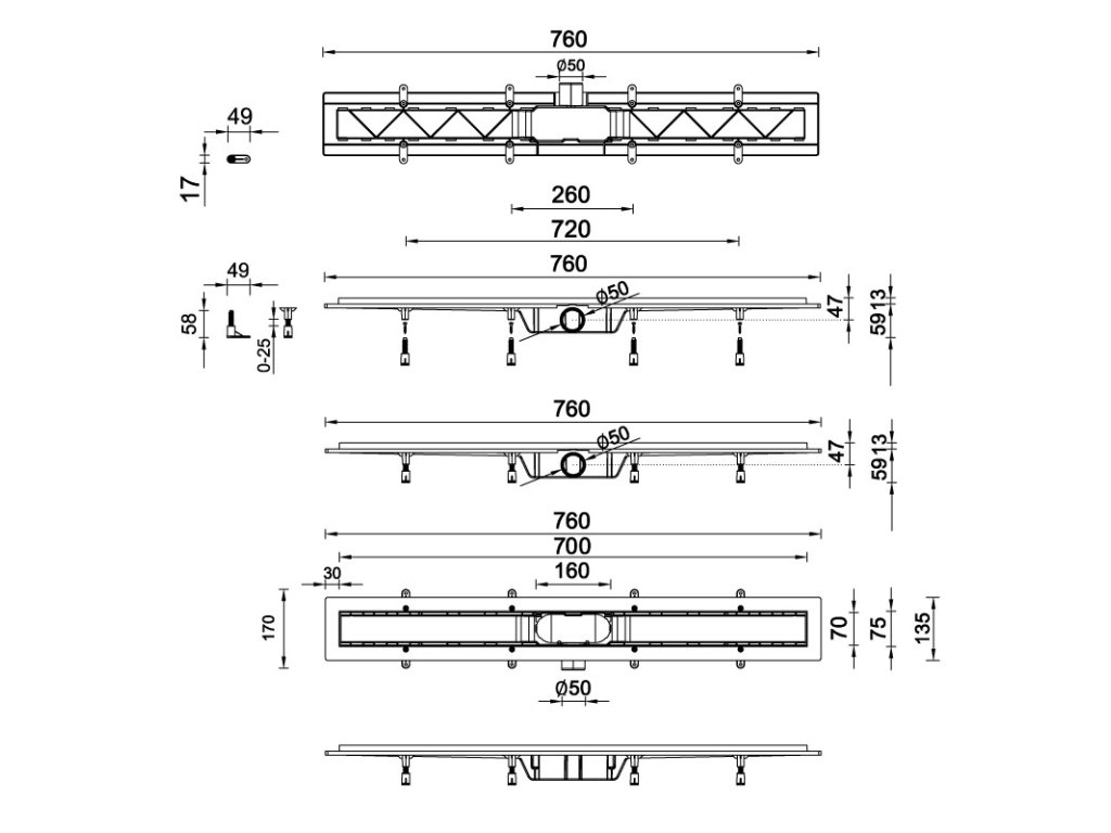 Jestli přemýšlíte o sprchovém koutu bez vaničky, odtokový žlab STANDARDline 2v1 v barvě nerez je přesně tím řešením, které hledáte. Hodí se totiž přesně do všech druhů sprchových koutů. Odtokový žlab, je možné pořídit ve variantě 2v1 (KLASSZIK), kdy lze použít jako pohledový nerezový rošt, nebo ho obrátit a vložit do něj dlažbu (max 10 mm). Žlab nabízíme v různých délkách a to 50, 70, 80, 90 a 100 cm.