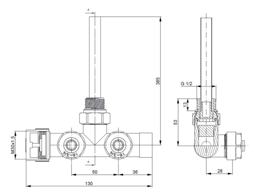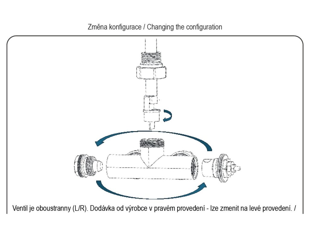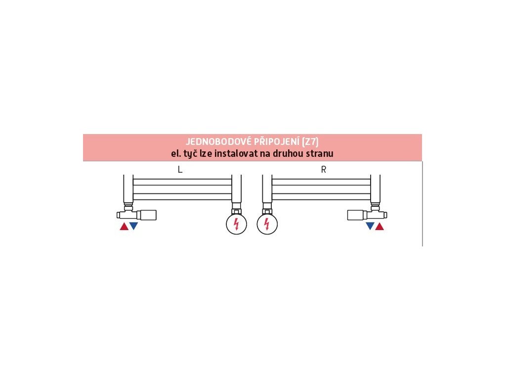 Ventil je určen pro připojení radiátorů na rozvody TUV s vývodem ze zdi. Elektrickou topnou tyč lze instalovat na libovolnou stranu radiátoru, nelze instalovat do ventilu.