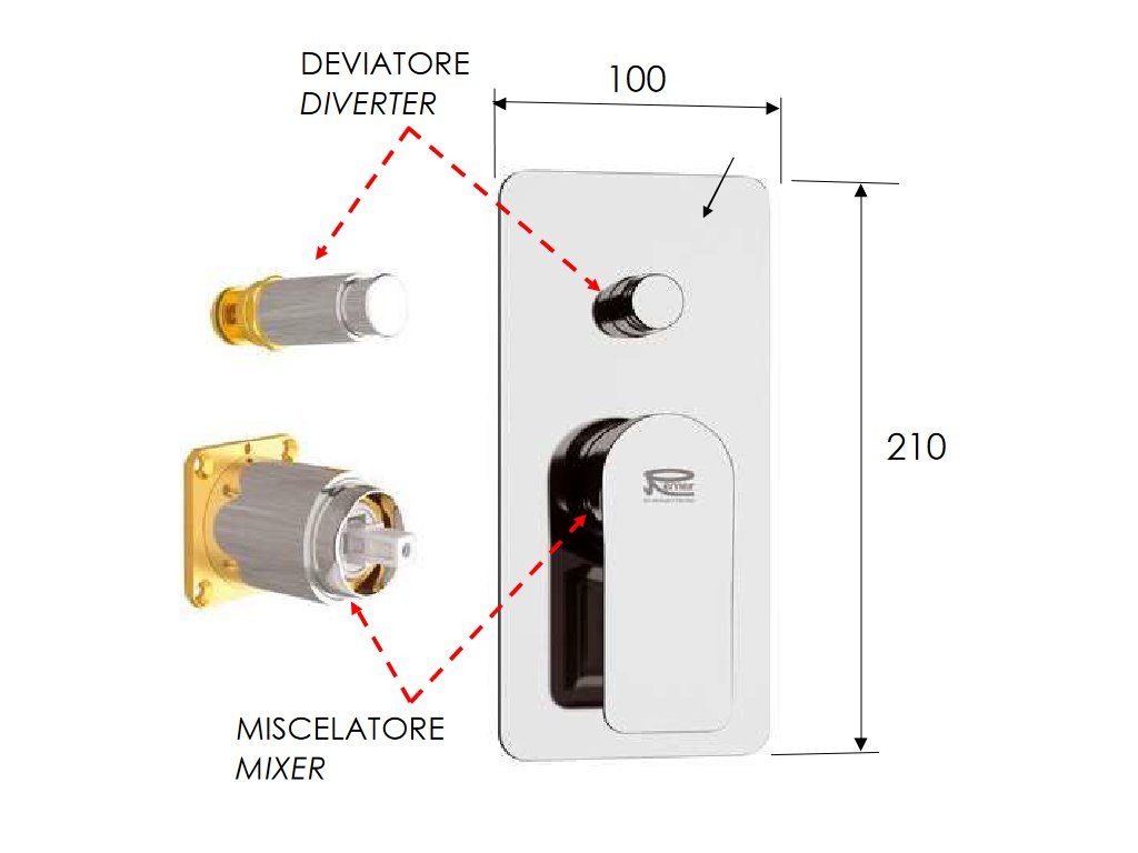 - Sprchová baterie podomítková, bez příslušenství, s přepínačem, 2 výstupy