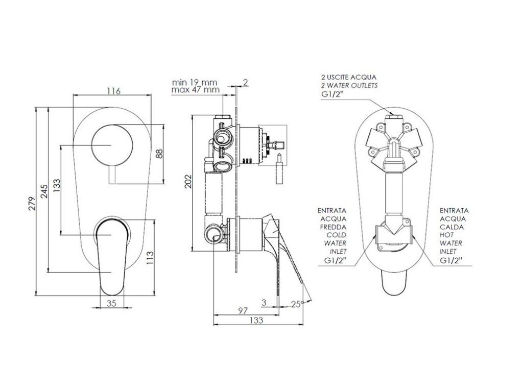 HOPA Podomítková sprchová baterie FONTI 94 - chrom BAREL94