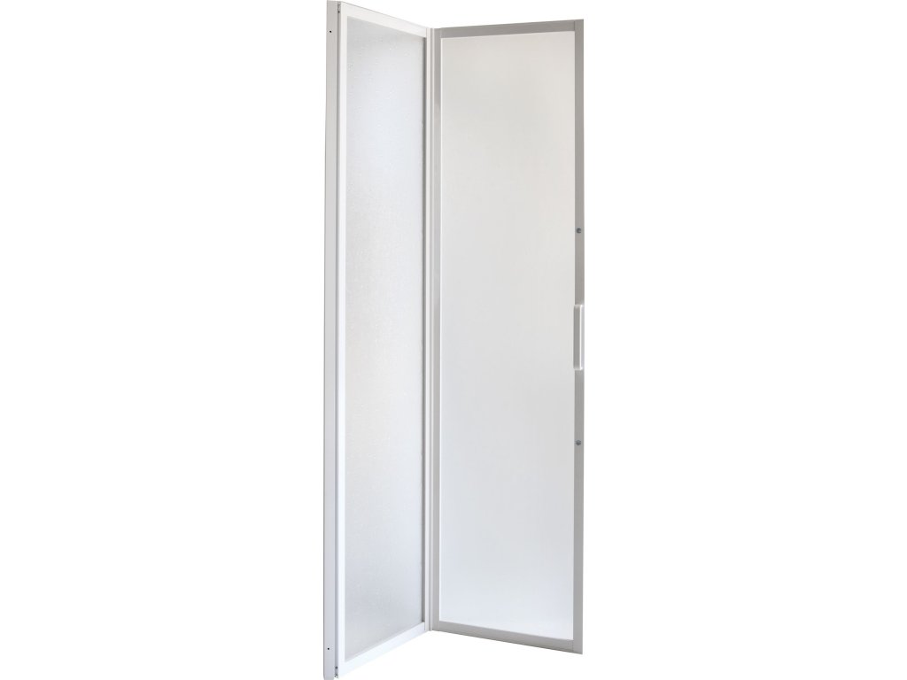 prostor ve složeném stavu. Základní konstrukce je vyrobena z odlehčeného hliníkového profilu povrchově upraveného komaxitem (prášková technologie), ve kterém je pomocí sanitárního silikonového tmelu uloženo syntetické sklo. Toto řešení zaručuje dokonalou nepropustnost vody, snadnou údržbu a zároveň zabraňuje tvorbě plísní. Veškeré použité materiály nepodléhají korozním účinkům.