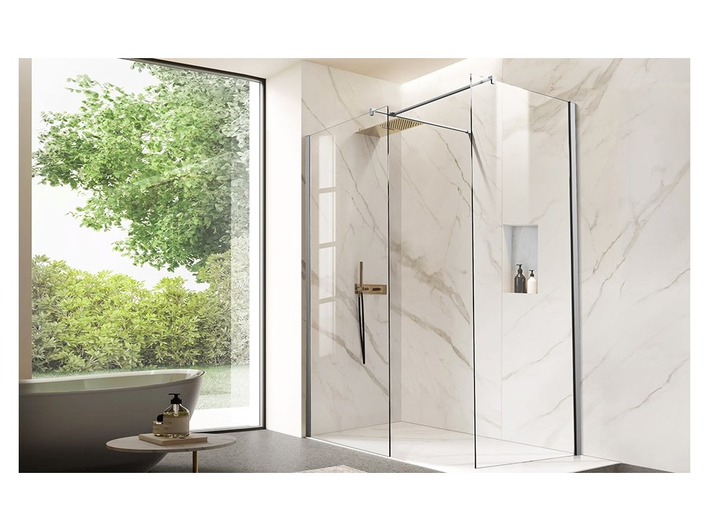 Walk-in sprchová zástěna LAGOS CHROM NEW s rámem a rozpěrnou tyčí ve čtyřech barvách (chrom, černá, zlatá a grafitová), nabízí jednoduché a přitom praktické řešení bez použití pohyblivých dveří, ale s maximálním vstupem. Dá se osadit jak na sprchové vaničky, tak i přímo na podlahu. Zástěny jsou vyrobeny z kvalitního bezpečnostního skla. K LAGOS CHROM NEW zástěně lze doobjednat i otočný boční panel, nebo držák ručníků, případně rohovou spojku rozpěrné tyče. Díky této spojce lze ze dvou kusů LAGOS CHROM NEW vytvořit obdélníkový sprchový kout v mnoha rozměrech.