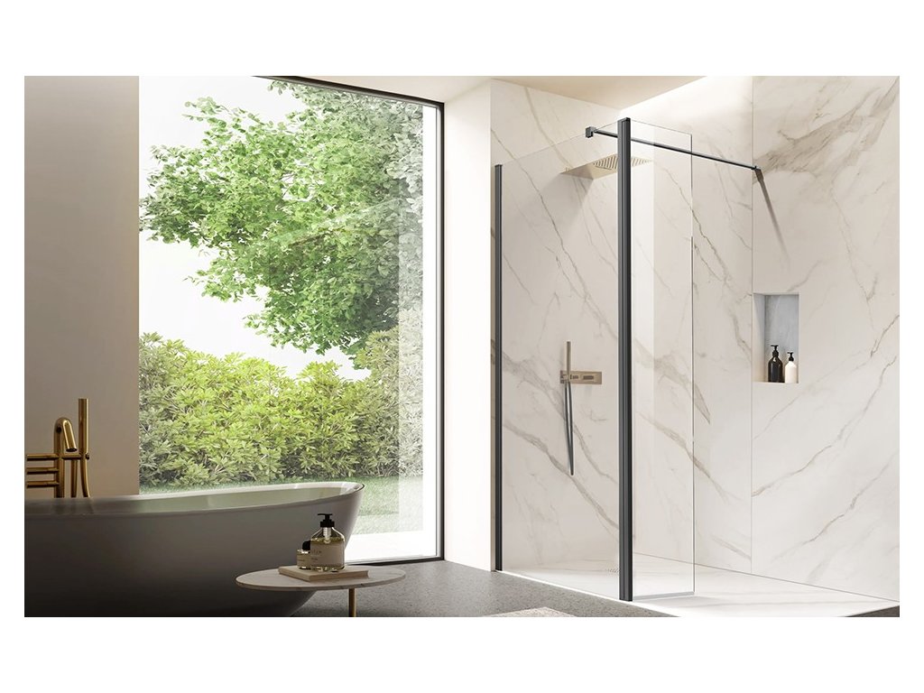 Walk-in sprchová zástěna LAGOS CHROM NEW s rámem a rozpěrnou tyčí ve čtyřech barvách (chrom, černá, zlatá a grafitová), nabízí jednoduché a přitom praktické řešení bez použití pohyblivých dveří, ale s maximálním vstupem. Dá se osadit jak na sprchové vaničky, tak i přímo na podlahu. Zástěny jsou vyrobeny z kvalitního bezpečnostního skla. K LAGOS GRAFIT NEW zástěně lze doobjednat i otočný boční panel, nebo držák ručníků, případně rohovou spojku rozpěrné tyče. Díky této spojce lze ze dvou kusů LAGOS GRAFIT NEW vytvořit obdélníkový sprchový kout v mnoha rozměrech.