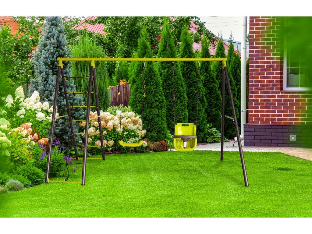 TIP: Pro opravdu bezpečné zavěšení dětské houpačky je ideální stabilní a pevná kovová konstrukce G21, která obsahuje i žebřík a lezeckou síť pro zábavu větších dětí nebo možnost zavěšení další houpačky či houpacího kruhu.
