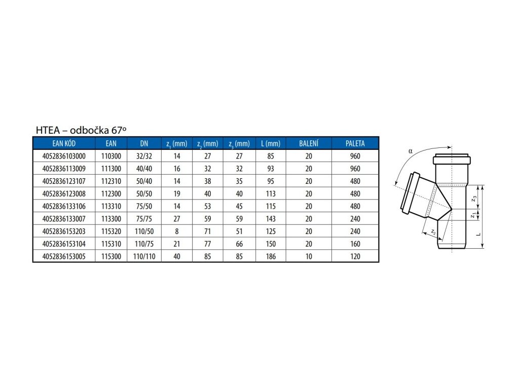 HT PLUS HTEA odbočka odpadní DN110/110, 67°, PP, šedá, 115300