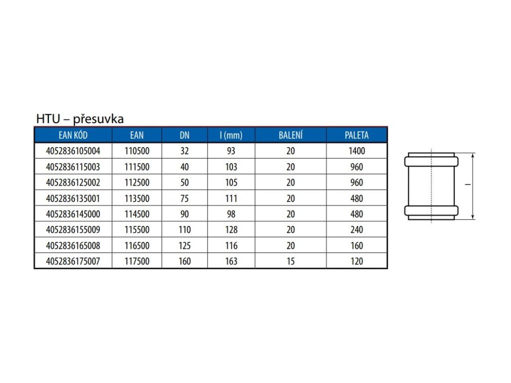 HT PLUS HTU přesuvka DN110, PP, šedá, 115500