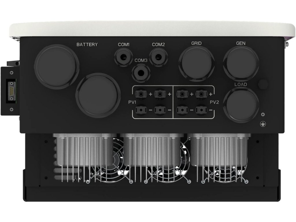 Měnič podporuje asymetrické zatížení až 7,5 kW na fázi a krátkodobé přetížení o 100 % po dobu 10 sekund. Díky funkci Smart Load efektivně využijete přebytky energie například pro ohřev vody. Barevný LCD displej zajišťuje přehledné ovládání a snadnou konfiguraci celého systému.