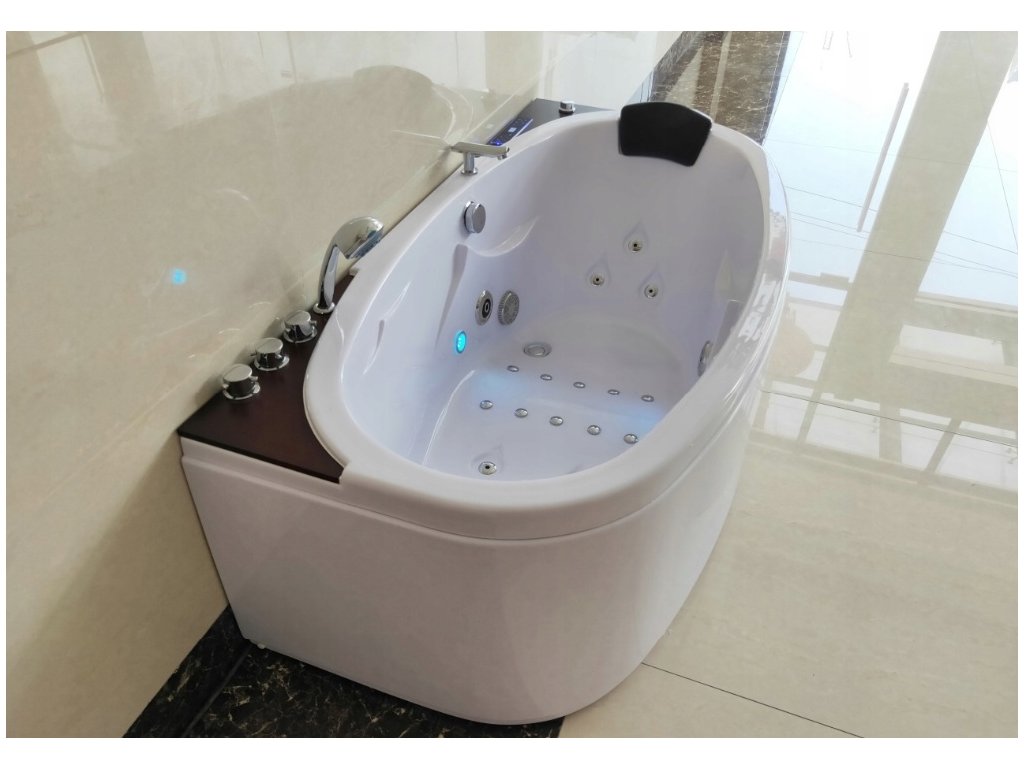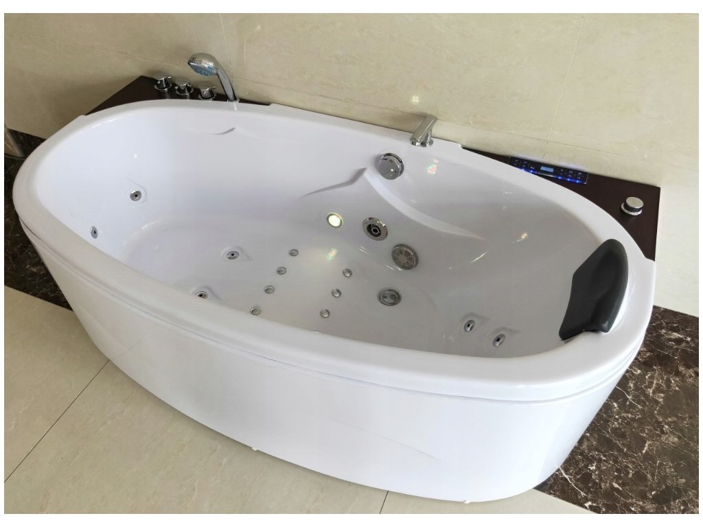 Kombinace vodních a vzduchových trysek poskytuje vyvážený masážní účinek, LED světelná terapie a ozonátor zajišťují příjemnou atmosféru a hygienicky čisté prostředí. Praktický dotykový panel zpřístupňuje všechny funkce včetně ovládání hudby přes Bluetooth nebo rádio FM. Konstrukce s ocelovým rámem a mosaznou armaturou garantuje stabilitu a dlouhou životnost.