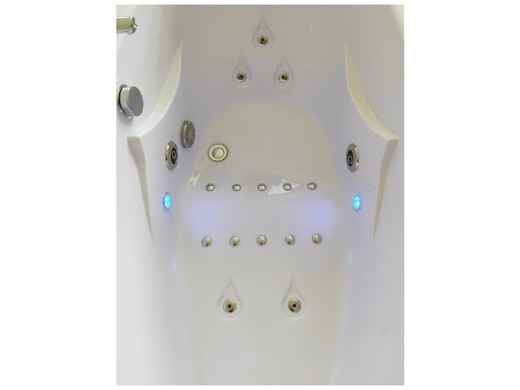 9 vodních a 10 vzduchových trysek, LED chromoterapie, ozonátor a dotykové ovládání.