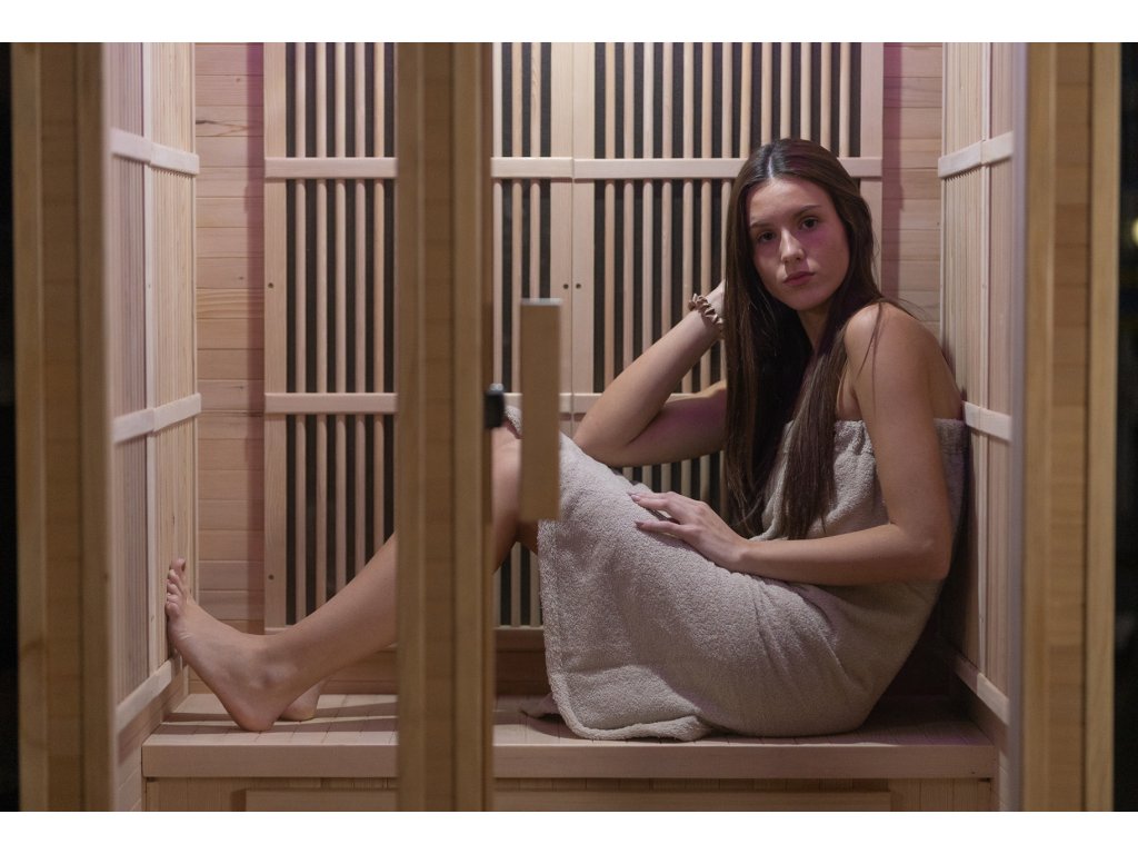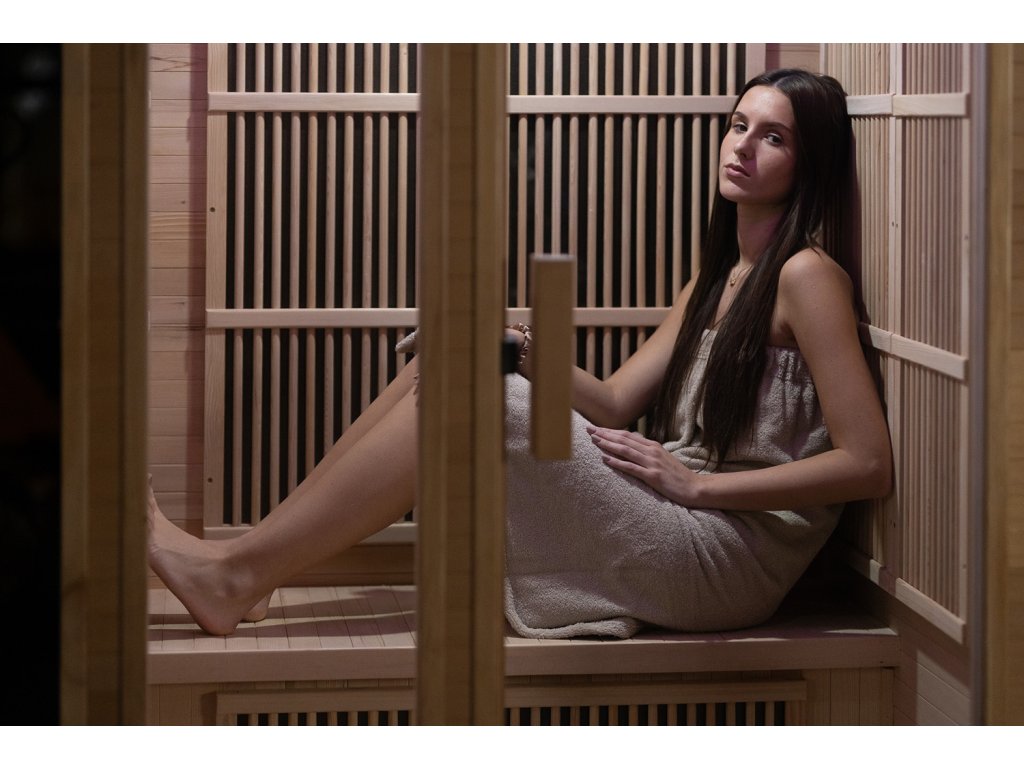 Ihned po vstupu pocítíte teplo, generované karbonovým infraohřívačem-infrazářičem. Vlnová délka tohoto tepla umožní infračerveným paprskům proniknout do vaší kůže a prohřát vaše tělo v podkožní oblasti. Většina lidí má tendenci se začít potit po 20 minutách pobytu v sauně, ačkoliv tato doba se zkracuje spolu s intenzitou pobytů v sauně.