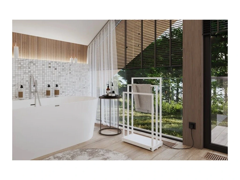 MOBILO ELECTRO 2 je jediným takto estetickým, účinným a ekonomickým sušákem textilu v mobilní variantě. K použití vám postačí elektrická zásuvka a žádná složitá montáž. Můžete jej umístit do jakékoli místnosti, nejen do koupelny. Můžete snadno sušit ručníky, oblečení a další textil. Vyhřívaná je pouze spodní základna sušáku a sálavým teplým vzduchem (který stoupá vzhůru) se suší textil, který je zavěšený na sušáku.