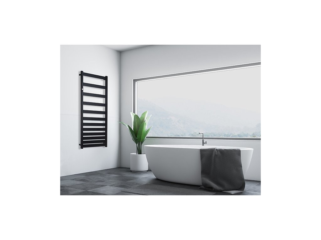 Instalprojekt Koupelnový radiátor BELTI černá barva Barva - Černá , Doporučená topná tyč (W) - 300, Rozměr A - 40, Rozměr C - 90, Skutečný rozměr radiátoru (v mm) - 400 x 896 mm, Typ připojení - Středové 50 mm RADBEL409031SP