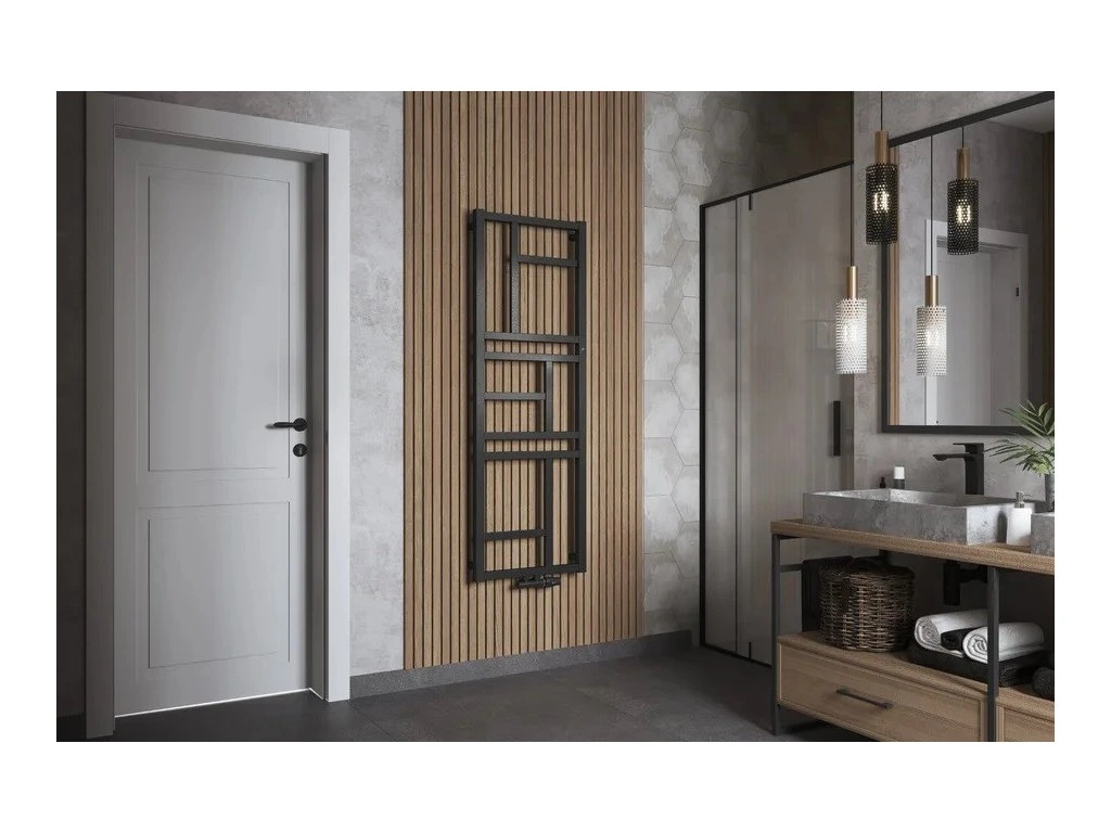 Instalprojekt Koupelnový radiátor MONDRIAN černá barva Barva - Černá , Doporučená topná tyč (W) - 300, Rozměr A - 40, Rozměr C - 85, Skutečný rozměr radiátoru (v mm) - 400 x 832 mm, Typ připojení - Středové 50 mm RADMON408031SP